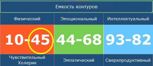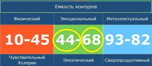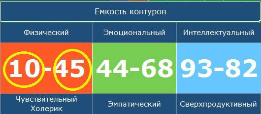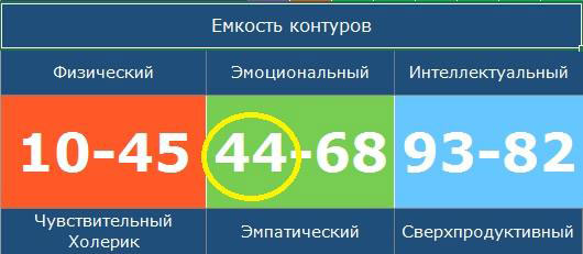 В при расчете емокстей чакр вы получаете 6 цифровых значений, выраженных в процентном соотношении. Они соответствуют 6-ти чакрам человека.