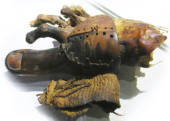 When treating the sick, the Ancient Egyptians also displayed practical creativity. An impressive example is this oldest prosthesis for a toe found in Egypt. Experienced specialists in antiquity created simple replacements of body parts made of cedarwood and leather as early as 600 B.C.