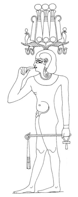 The child-God Heka was depicted in the typical child-God pose with his hand or finger at his mouth and the characteristic child curl on the side of his head. He is thus iconographically comparable to the Horus Child Hor-pa-chered. Hor-pa-chered means Horus-the-Child and was called Harpocrates in Ancient Greek. Another exciting aspect of the representation of the God Heka is that he sometimes shows up with two snakes in his hand. So, it is not surprising that the nowadays well-known Aesculapian staff with the coiling snake is still an often-used symbol for medicine.
