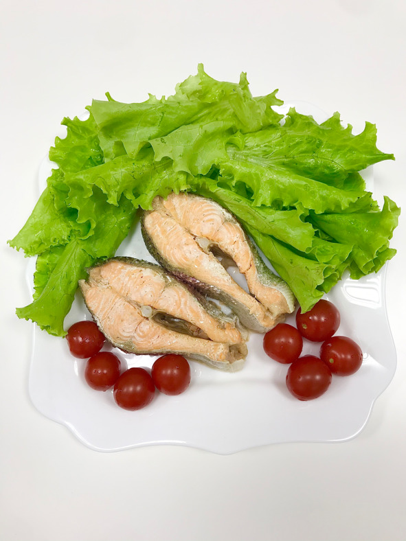 1. Лосось хорошо промываем, режем на стейки, солим.