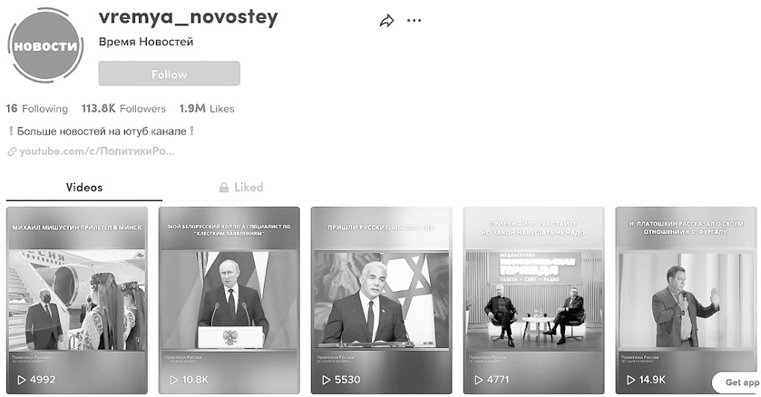 Голяков «Мозг Тик-Тока»[19] с 1,6 млн подписчиков начинает свои новостные подборки по правилу трех секунд: «Срочные новости на 24 марта», «YouTube в России может быть заблокирован уже на днях». В качестве фона он устанавливает фото типичной телевизионной редакции для придания эффекта настоящего СМИ. Но реальный секрет его успеха в расширении аудитории. Голяков периодически дает материалы общего характера: «Кто такой Хагги Вагги?», «Врач назвал привычки, которые разрушают здоровье». Они не только «взлетают ракетами», но и долго живут в сравнении со «срочными новостями».