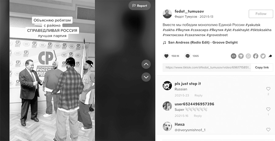 Как-то раз я выложила креатив, где назвала «кринжем дня» ролики депутата Федота Тумусова[45] и мэра Вологды Сергея Воропанова[46]. Политики поучаствовали в челлендже с маской Грув Стрит. Комментаторы меня захейтили. Они объяснили: это вовсе не кринж, политики молодцы, а видосы – годные. Пришлось записать видеоответ, чтобы заявить, что кринж дня – это я. Я неточно употребила слово «кринж». Получилось глупо, но поучительно.