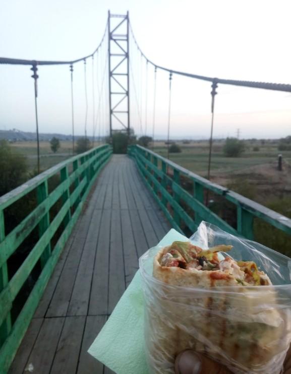Попрощавшись с дальнобоем и парнем, я отправился искать место для ночлега, по пути перекусив местным дёнером, который тут готовится несколько иначе, чем у нас (но достаточно вкусно!). Нашел островок прямо в центре города, где и установил палатку. Очень быстро установил, так как мошка у Селенги и вдоль водоемов в самом городе просто зверская!..