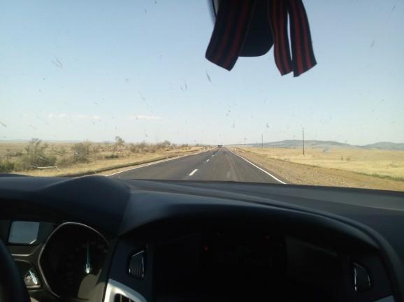 В один прекрасный момент наши пути с водителем разошлись и я остался стоять где-то посреди степи. Ни ручьев, ни озер, ни деревьев. Только 35 градусная (а то и выше!) жара и я. Ну и рюкзак. Долго ли, коротко ли… но машину я поймал. Да не простую, а с пьяненькими водителями. К моему счастью они оказались адекватными парнями, хотя и под градусом после пары дней без сна. Не скажу что было страшно, скорее неожиданно. Проехали мы с ними немного, может километров 30, но я не особо расстроился.