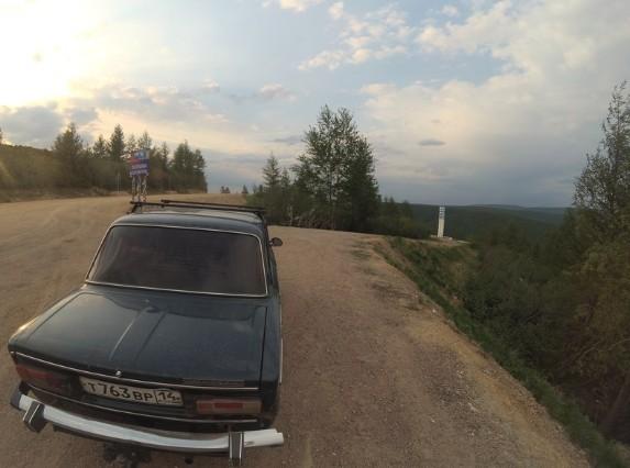 Стоило им меня высадить, как вдруг почти в ту же минуту остановился водитель шестерки, Илья. Вот это удача! Уже вечерело и я боялся, что придется ночевать в лесу без единой души – не лучшая идея для Якутии. Так говорят. Он оказался машинистом поезда и ехал прямиком в Нерюнгри, второй по размерам город после Якутска в Якутии. Проехали несколько десятков километров и увидели табличку, гласившую, что дальше начинается Республика Саха (Якутия). Все столбы были увешаны ленточками и Илья предложил навязать наши две – на хорошую дорогу. Я отказываться не стал – надо так надо.