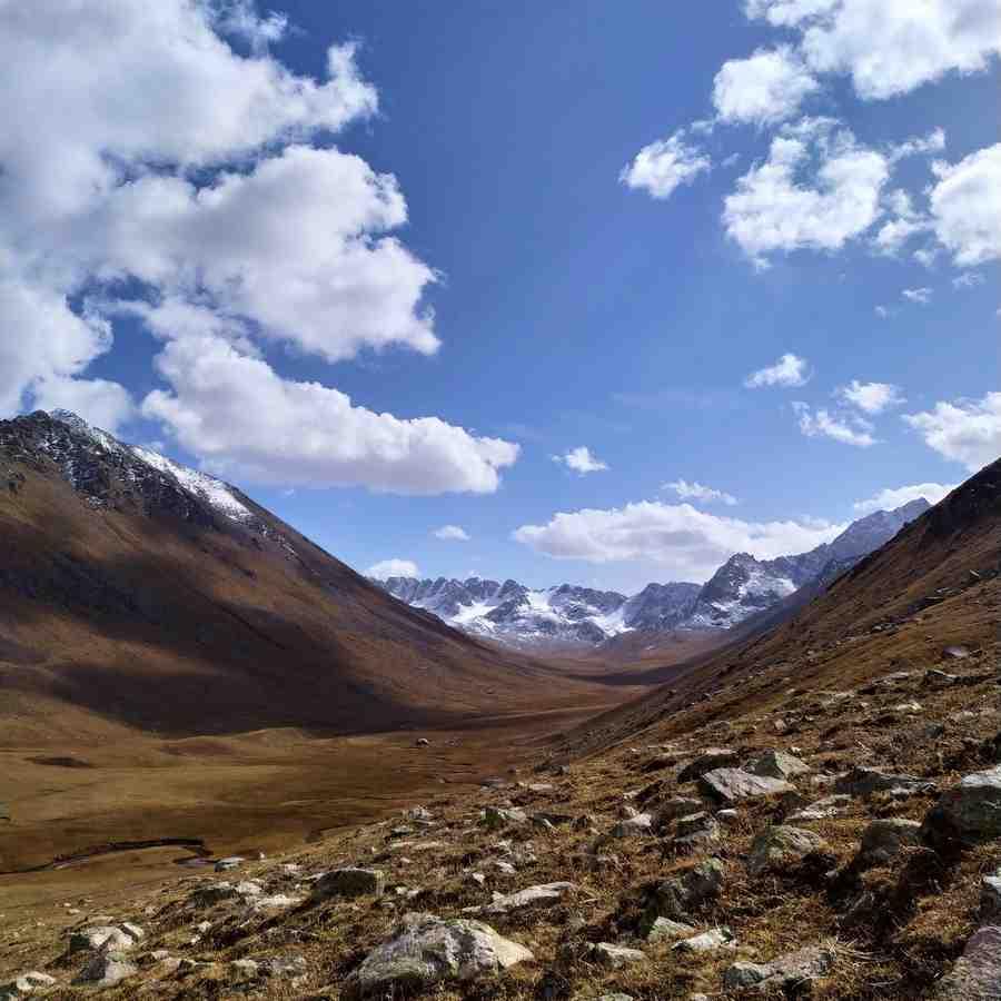 По пути к перевалу я встретил несколько стоянок местных жителей у джайлоо, что уже были оставлены. Октябрь на дворе – многие вернулись в места зимовки. Подъем на новый для меня склон был и тяжелее и легче одновременно. С одной стороны, в этот раз меня не мучили бесконечные «моховые» подушки, поскольку весь путь лежал по камням, с короткими вкраплениями лужаек, с другой – теперь я шел не по равнине, а с каждым шагом резко набирал высоту. Поток реки, что нес свои воды рядом со мной, то и дело превращался в небольшие каскадные водопады, но и они исчерпали себя, стоило мне только перевалить через ущелье. Течение скрылось под огромными валунами и лишь журчание воды изредка выдавало его.