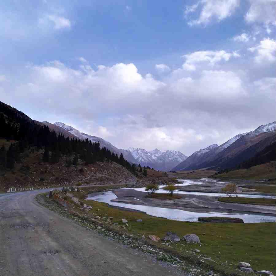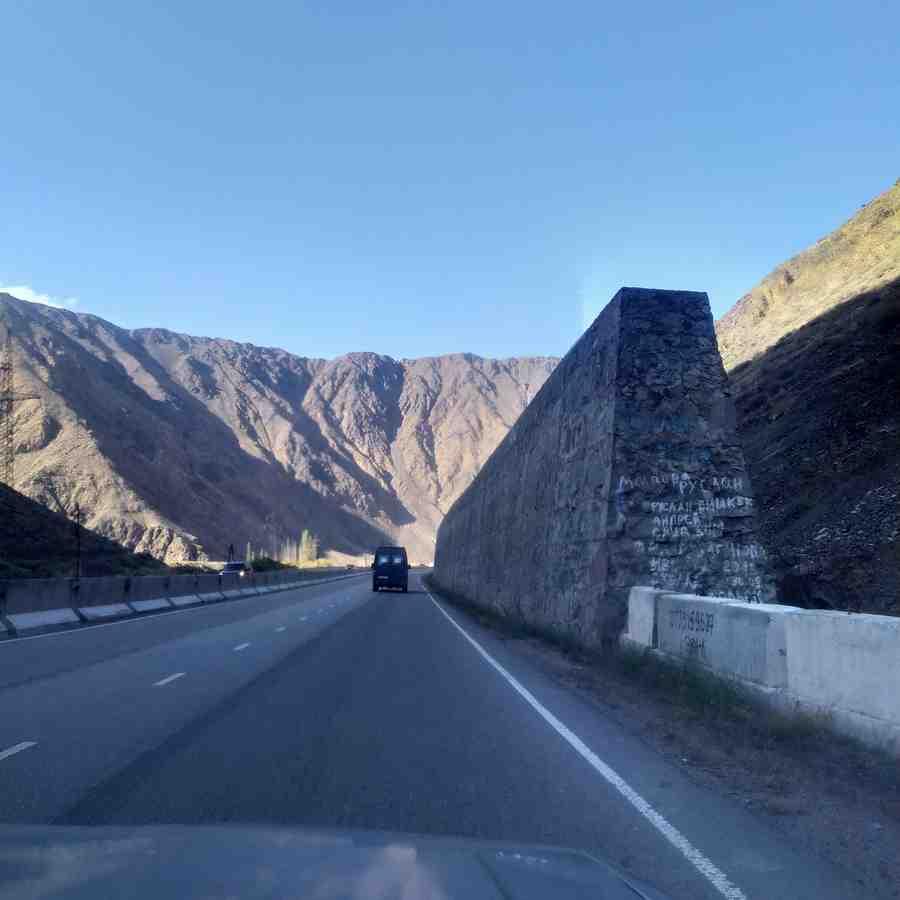Погода наладилась, на озере установился штиль и я отправился дальше, в сторону столицы страны – Бишкека. Чем дальше я уезжал на запад вдоль озера, тем масштабнее становилась степь вокруг, но стоило мне только потерять из вида Иссык-Куль, как хребты вновь воспрянули, обрамляя трассу высокими скалами. Начался большой Киргизский хребет, именно он отделял страну от Казахстана.