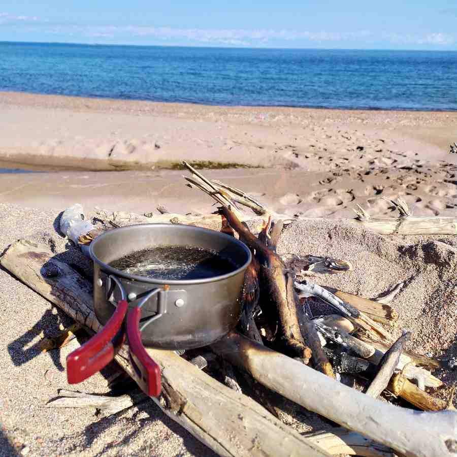Первым делом как проснулся, решил поставить донку, в надежде что-нибудь поймать. Спиннинг может подвести, но донная снасть даже в незнакомом водоеме способна творить чудеса. Так и получилось, стоило мне начать готовить завтрак, как я услышал заветный звон колокольчиков, закрепленных на удилище. Рыба!