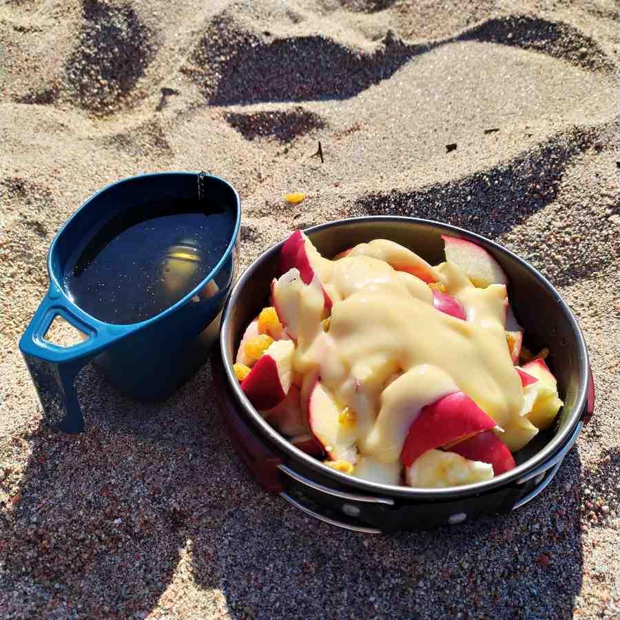 Пришлось потратить остатки запасов на кружку чая и личную гигиену, поскольку нет ничего хуже, чем после дня в пути грязным ложиться в спальник. Для утоления голода в очередной раз в дело пошли яблоки, что все никак не могли закончиться от самого Каракола, став моим завтраком, обедом и ужином, моим хлебом.