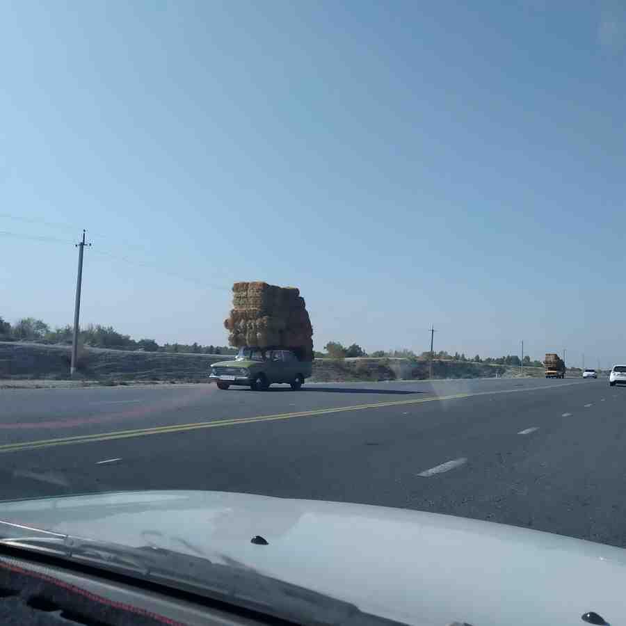 В дороге я повстречал интересный способ транспортировки сена – два стареньких москвича везли на багажнике двухметровые стога, нарезанные ровными прямоугольниками и превышали высоту машины в несколько раз. Со временем это перестало меня удивлять – так здесь грузят любой транспорт, остается лишь поразиться способности уравновесить такой «груз». То и дело мимо везли шкафы, кровати и прочую мебель в 2-3 этажа. От таких я старался держаться подальше.