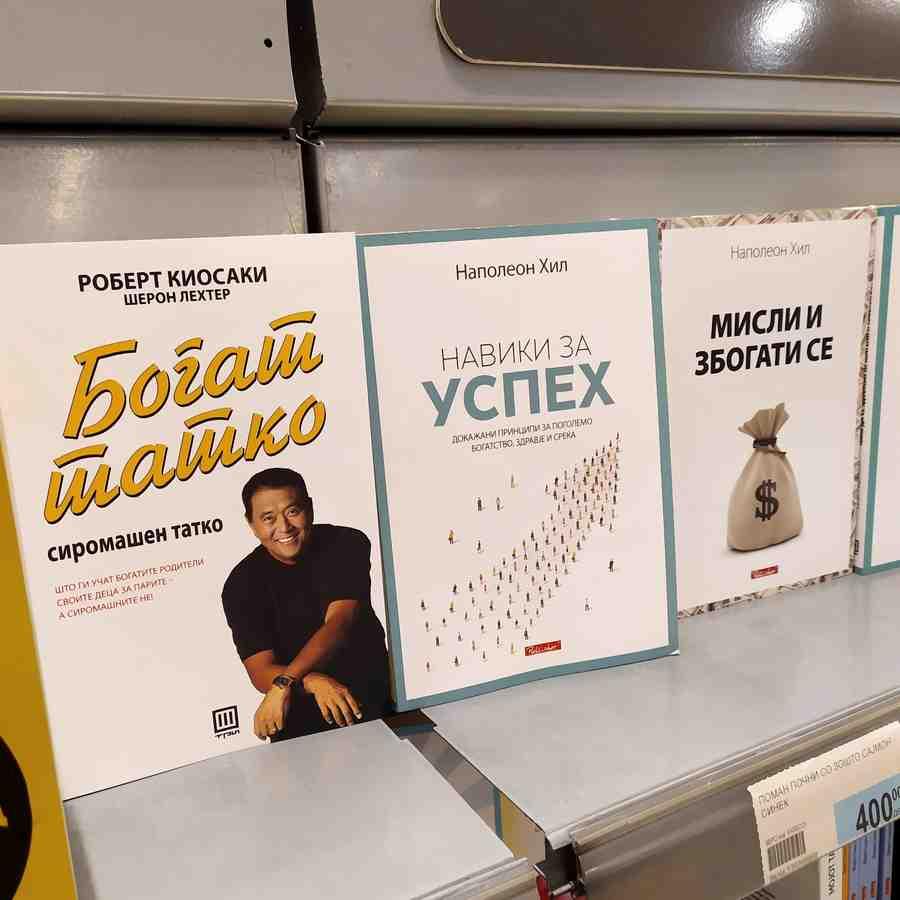 К утру я чувствовал себя значительно лучше, но решил, что не стоит торопиться – лучше взять еще один "выходной". На улице лил ливень, так что это было как нельзя кстати. Прогулялся до супермаркета, где уделил время и книжному, потешаясь над македонским переводом названий. У них много забавных слов, таких как "Излез" (Выход), "Довидуванье!" (До свидания), "Оброк" (Предложение)… Книга Кийосаки «Богат татко». Вообще, зная русский, можно понять почти что угодно.