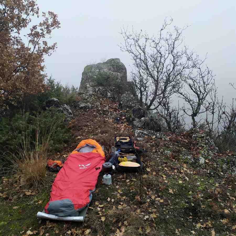 Ну ничего, главное держать под контролем рассудок, тогда все будет хорошо. Сгибаю пенку в два раза, под ноги кладу рюкзак как на Памире. Туалет, чтобы избавиться от лишней воды. Для профилактики решаю выпить небольшую кружечку чая, но… Мой греческий бутан не горит. Совсем. Слишком холодно. Тогда решаю попробовать довольно странную идею – зажечь газ внутри спальника и бивуака. Голова снаружи, так что угрозы отравиться или задохнуться нет, выглядит все это довольно комично, но… Работает! Газ постепенно разгорается, я готовлю чаек, красота. Тут важно понимать, что чай нужен не столько телу, сколько духу. Ощущение тепла успокаивает. Беспокойство же усиливает холод многократно. Я снова засыпаю в тепле, как ни в чем ни бывало.