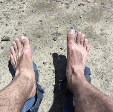 До трассы, что поведет меня в сторону Гоби, идти километров 5, но ноги сильно стерты после вчерашнего, поэтому идти больновато. Обычно у меня нет мозолей от любимых сандалий, но я слишком интенсивно переключился на них с другой обуви в этот раз, ноги не успели привыкнуть. Теперь не успевают зажить.