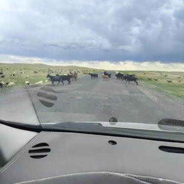 На основных трассах Монголии действует ограничение скорости в 80 км/час, тем интереснее наблюдать, как кто-то тщательно его соблюдает, а кто-то… Мы облетали препятствия на скорости от 100 до 150 км/час. Бешеный Приус!