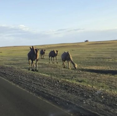 Увидел первых монгольских верблюдов. Чудесные создания. Похоже, это пустыня.