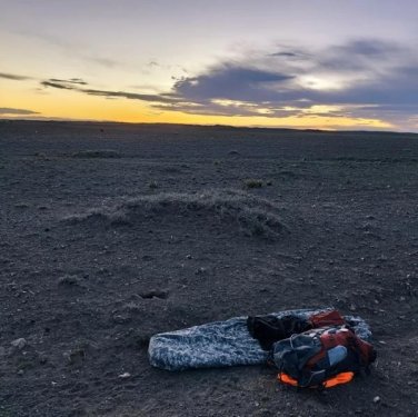 Волшебный закат! Есть что-то чарующее в подобных равнинах. Куда ни глянь – десятки километров ничего и маленький ты. Красиво. Но не стоит обманываться, безумно звёздное небо неизменно принесет за собой резкое похолодание. Оденусь потеплее, лучше вообще во всё.