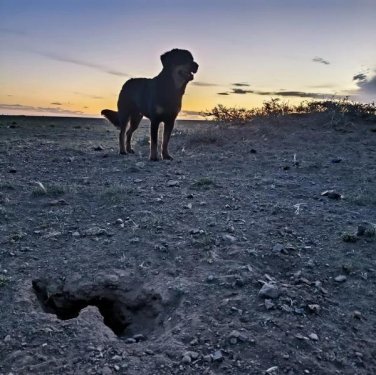 Когда я уже разложил лагерь, ко мне пришел пёс, видно живёт здесь на повороте, подкармливаемый дальнобойщиками. Мне его угостить нечем, что он быстро понял и начал охоту на ящериц и прочую живность в норах.