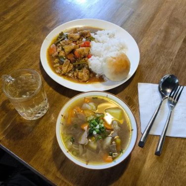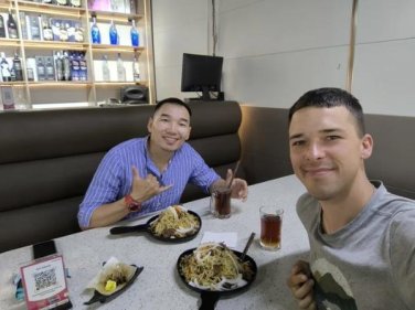 Так и не найдя монгольское кафе, что показалось бы мне притягательным, я зашёл в одно из корейских. Не пожалел ни на секунду. Особенно удивил хлеб, он выглядел как обычная воздушная булочка, но на деле оказался плотным и вкусным сам по себе. Немного загрустил лишь от того, что блюда слишком сытные и я нескоро смогу попробовать другие.
