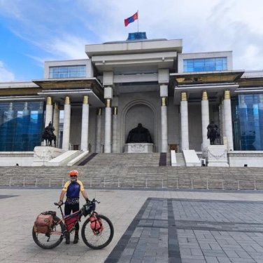 На главной площади Улан-Батора познакомился с велосипедистом Линдси из Новой Зеландии. Он начал свой путь в Китае и планирует проехать по Шелковому пути до самых Афин в Греции. Своим путешествием он так же привлекает внимание к проблеме больных раком и собирает средства.