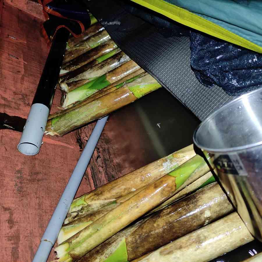 Как и ожидалось, я хорошенько «отдохнул». Зато теперь мне не придётся терпеть изматывающие ливни, тесниться под прижимающимся ко мне тентом. Каркас для моего нового крова в высоту чуть больше 1 метра, чего с запасом хватит, чтобы сидеть в лодке во время дождя без необходимости пригибаться. Кажется, теперь моя жизнь на реке изменится.