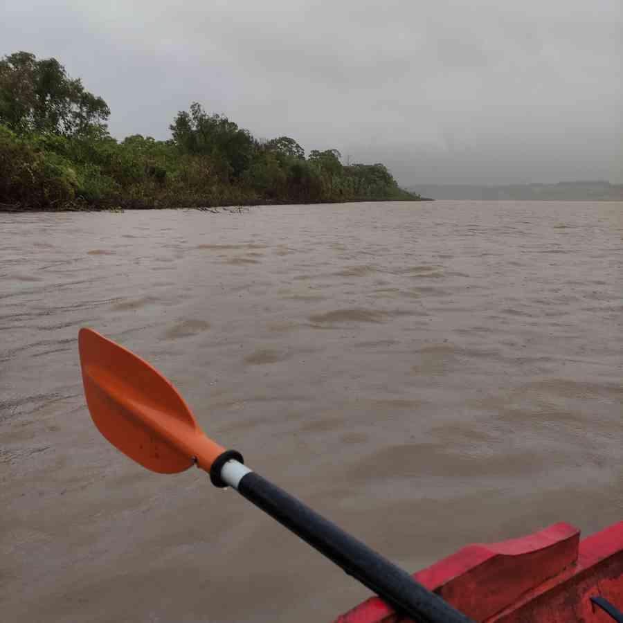 Дождь и не думал прекращаться, так что я решил убрать тент и начать собираться в дорогу. Всё равно всё уже мокрое. Что ж, зато принял ванну. И, можно сказать, постирал всё, что было в лодке. Забавный факт (но не для меня): комары никуда не делись, продолжили кусать даже под дождём! Отчалил, шутя про себя: «А говорят, что под лежачий камень вода не течёт!» Хех. Укутался в спасательный жилет (впервые с начала пути), чтобы было теплее, накинул дождевик. Что ж, река ждёт.