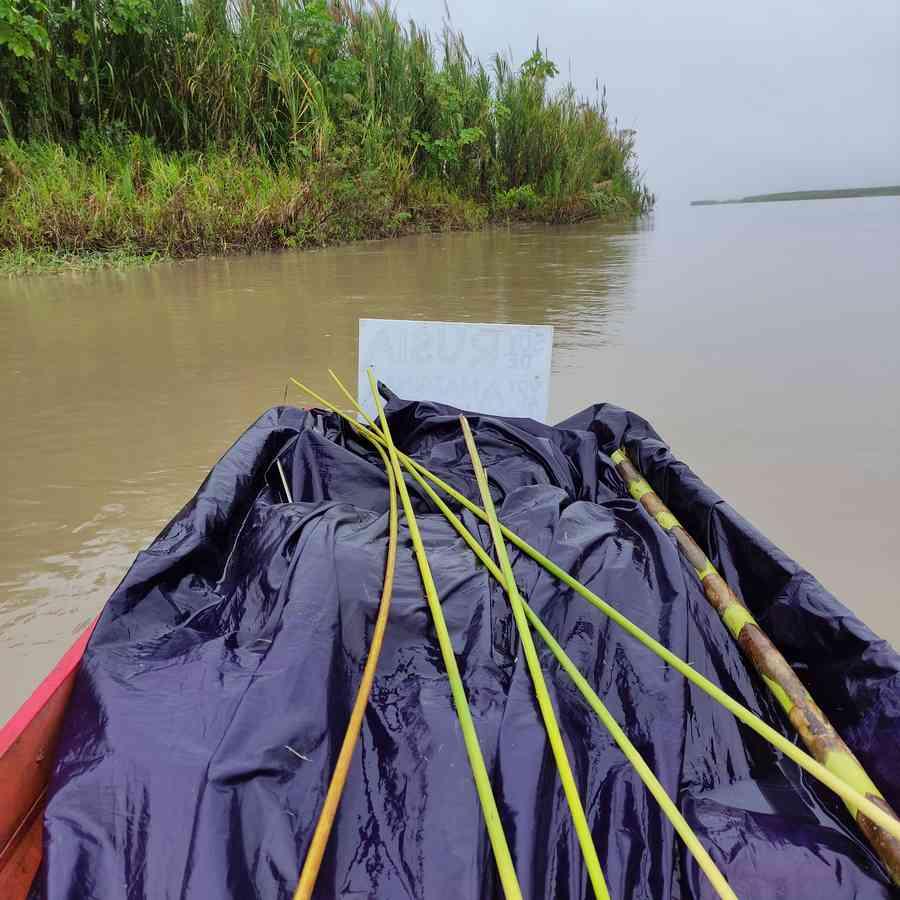 Проснулся рано утром от ощущения, что мои ноги находятся в воде. Не сразу понял, в чём дело. Оказалось, всю ночь лил ливень, вода с части тента стекала прямо в лодку. К утру она достигла уровня моей кровати и дошла до ног, где был наклон. Вот это да… Кое-как выровнял тент, раздвинул тростник и начал вычёрпывать воду металлической кружкой (её, кстати, я предусмотрительно покупал именно для этого). Наступил рассвет, а я всё черпал и черпал…