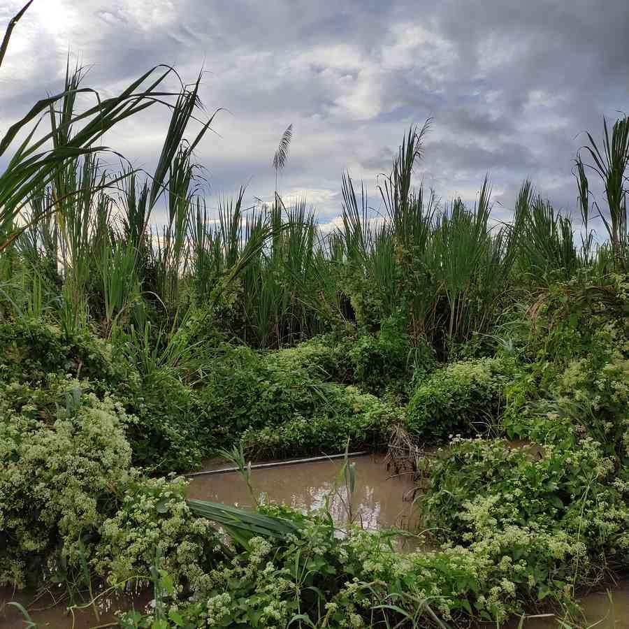 Довелось увидеть огромный остров зелени, досок и брёвен, что несло по реке, не меньше 30 квадратных метров! Такой большой, что по нему ходила птица, ловила себе добычу. Интересно, как далеко он сможет дойти? Станет остров больше или рассыпется? Думаю, он просто примкнёт к суше и станет частью нового берега.