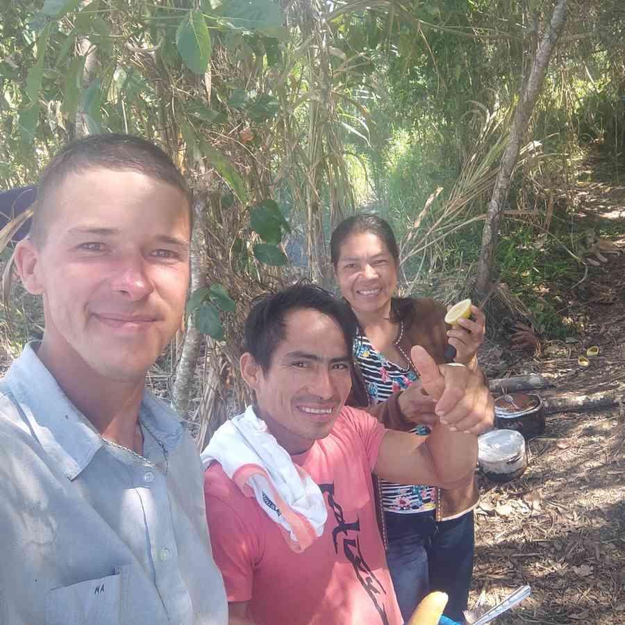 Ради интереса решил попробовать установить в этом затопленном лесу свою ловушку на мальков, закинув в неё немного фариньи. Хонас с любопытством наблюдал за процессом, так как никогда не видел подобного способа ловли. Выждали пару минут. Проверяю. Рыба! Несколько маленьких рыбёшек, похожи на пираний. Малёк паку? Это травоядная пиранья. Я в восторге, Хонас тоже, но теперь его черёд учить меня.
