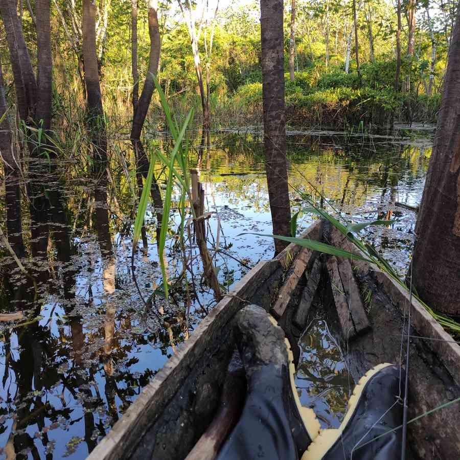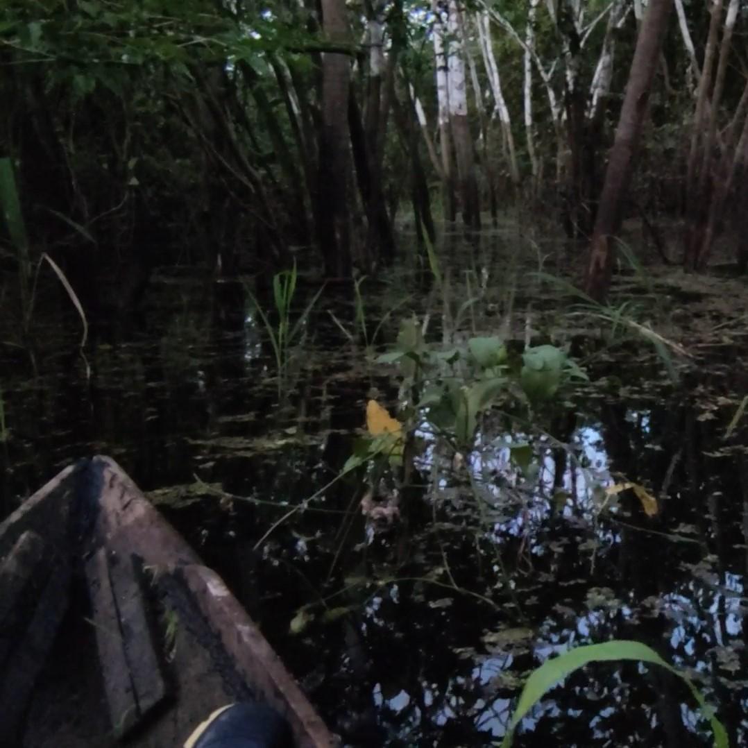 После обеда Хонас предложил мне отправиться с ним на рыбалку, чтобы показать, на что можно ловить рыбу в таких местах. Мы прошли по узенькой тропинке посреди джунглей до места, где нас встретило вышедшее из берегов озеро и затопленный лес. Вот оно, царство змей и кайманов! Круто! Звучит чуть безумно, не так ли?