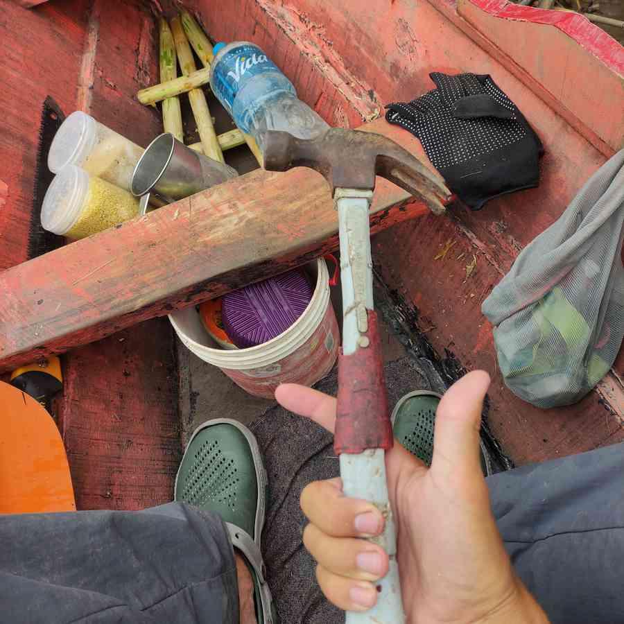 Успешная рыбалка придала мне энергии. Я занялся строительством тента на каноэ. Когда Хонас увидел, что я забиваю гвозди твёрдым куском дерева, он принес мне молоток, сказав, что это подарок. Старый ржавый молоток с изодранной ручкой, но такой ценный и незаменимый! Даже не знаю, что в моей ситуации могло бы быть большим подарком. С ним моя работа кратно ускорилась.