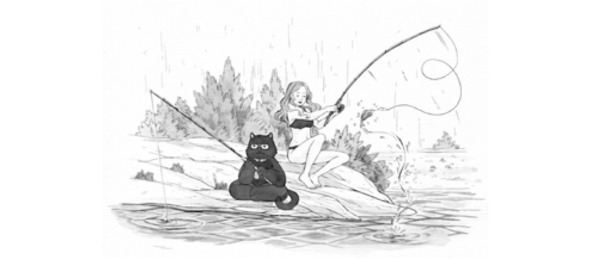 Следующей была мисс Мэри: она поймала селёдку, потом ещё и ещё – и она, и кот Танака, и Хантер начали вытаскивать селёдок одну за другой: видимо, поблизости проходил косяк этой рыбы.