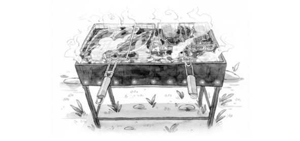 Эдвард и Макс разожгли огонь, и вскоре на двух решётках готовился настоящий морской обед: потрескивая от жара, открывали свои перламутровые створки мидии, шипела соком жарящаяся рыба, подрумянивались зелёные кабачки и сочные красные перцы.