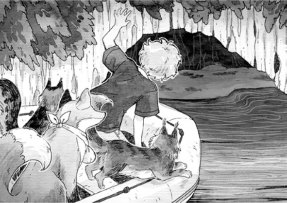 Все наперебой стали хвалить тэнгу и лисёнка, а ещё им очень хотелось узнать, что за морское чудище проглотило крючок Хантера.