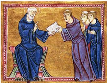 Монахи. Миниатюра. Манесский кодекс, начало XIV в., Германия