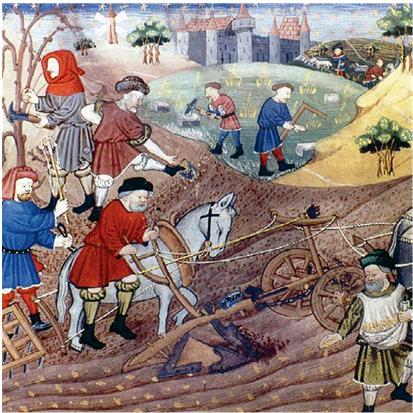 Первое из этих изменений экономического порядка мы уже назвали – это переход Европы, сильно урбанизированной в римскую эпоху, к сельскому образу жизни. Приходят в негодность дороги, мастерские, склады, оросительные системы; понижается уровень культуры. Упадок техники особенно заметен в уменьшении числа изделий из камня: место главного материала вновь занимает дерево. Отток городского населения в сельскую местность не компенсирует последствий демографического спада. Вместо города (urbs) базовой экономической и социальной ячейкой становится большое имение (villa). Единицей населенности и использования земель теперь является манс, земельный надел, размер которого варьируется, но обычно остается очень небольшим: это минимум, необходимый, чтобы прокормить одну семью.