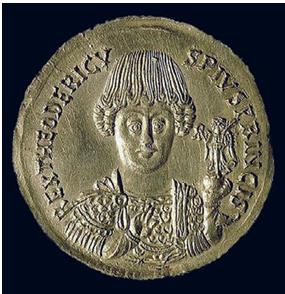 Теодорих Великий. Изображение на золотом медальоне достоинством три солида. Национальный музей (Рим)