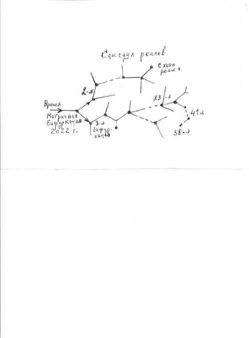 Узел внизу – точка бифуркации матричного реала, с чего и началась ветка Мультиверсума со всеми нами. Эта точка соответствует февралю две тысячи двадцать второго года, когда решалась судьба СВО. Налево пошла ветка, где войны не случилось.