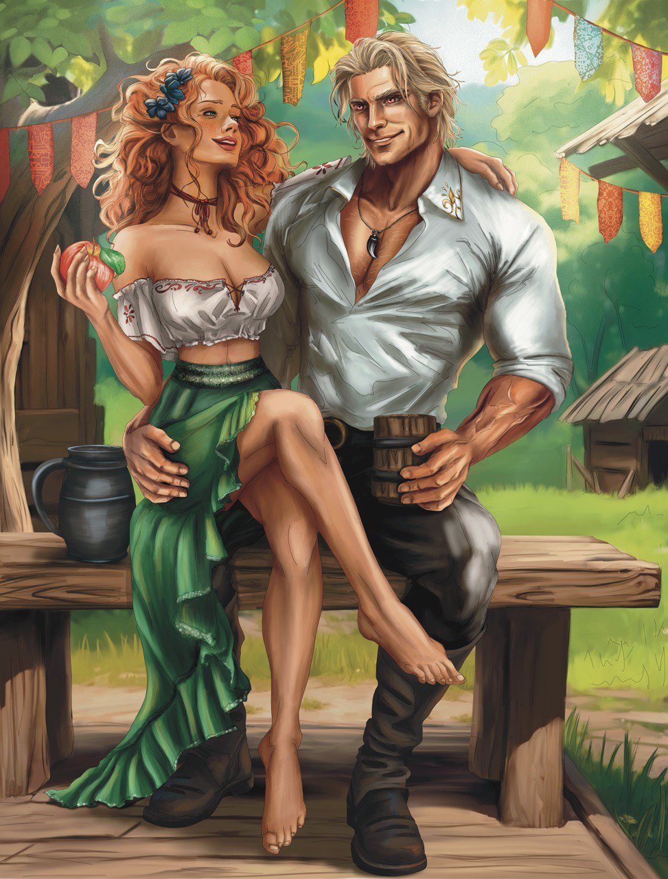Поодаль загорелись костры, а на самой поляне вспыхнули факелы. В воздухе витала атмосфера праздника. Она проникала в каждого, разливаясь вокруг, как сладкий тягучий мёд. Люди вставали со своих мест и подходили ближе к центру поляны, где собирались музыканты.