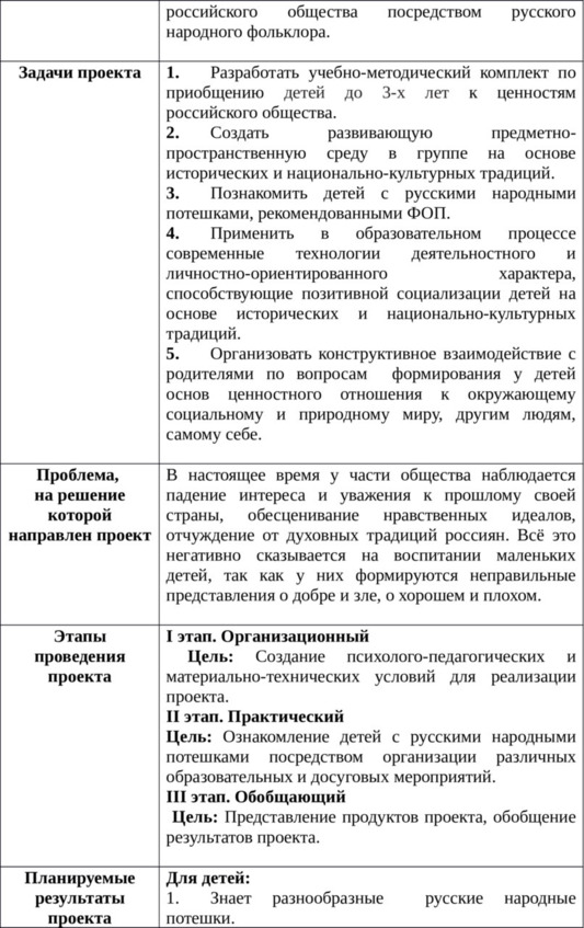 Особенность проекта состоит в том, что традиционно веками используемые в работе с детьми русские народные потешки благодаря акценту на ценностные ориентиры наполняются новым смыслом и отражают современные запросы российского общества.