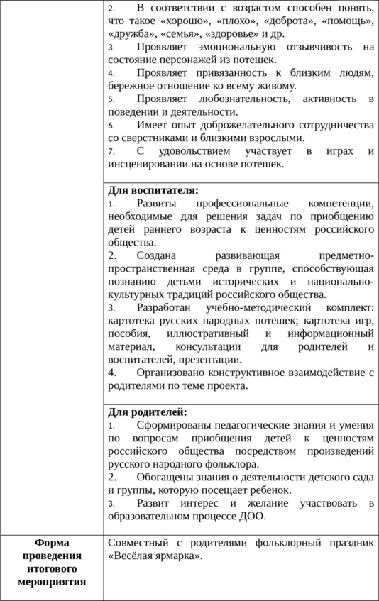 – комплекса современных форм взаимодействия с детьми раннего возраста в процессе приобщения к ценностям российского общества;
