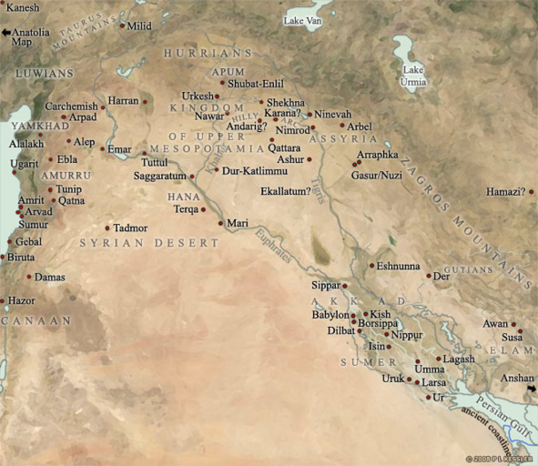 Карта Месопотамии, 2000 год до н. э. Сайт https://www.historyfiles.co.uk
