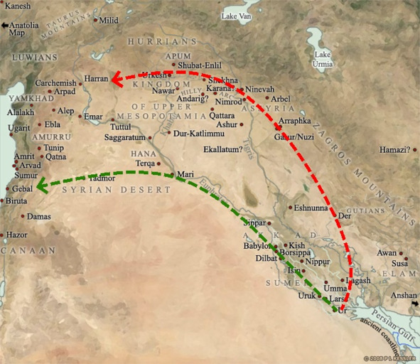 Рассмотрим возможные пути, по которым Терах мог попасть в Ханаан.