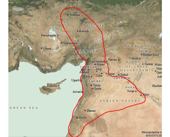 Но как далеко и в каком направлении Авраму пришлось идти? Где жили хананеи и где проходили границы их земель? Для начала обратимся к истории Ноаха. Ханаан был младшим сыном Хама и внуком Ноаха, или Ноя. Что-то произошло между Ноахом и Ханааном. В книге Берешит не указано, что именно, и по этому поводу существует множество мнений. Но вероятнее всего, это каким-то образом было связано с деторождением, так как у Ноаха больше детей не было после Яфета. В результате, как бы там ни было, Ханаан был проклят Ноахом. Но, несмотря на проклятие, Ханаан был очень плодовитым, и у него было 11 детей, довольно известных даже в наши дни. Место проживания многих можно определить по названиям городов, таких как Сидон (старший сын Ханаана обитал в районе одноименного города в Ливане) или Арвад (в этом городе на территории Сирии жил другой сын). Помогут в этом и исторические документы: например, амореям принадлежали такие страны, как Мари и Катна, а хетты владели половиной территории нынешней Турции. Учитывая все аргументы, можно с уверенностью утверждать, что хананеи проживали на обширной территории к югу от реки Евфрат. Как можно увидеть, на карте граница обитания хананеев очерчена красным цветом.