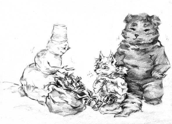 – Извините меня! Я виноват перед всеми. Мне так хотелось сделать подарки на праздник своим. У меня три сестрёнки и три братика, я обещал им что-нибудь найти, но так и не смог – Лису стало стыдно, его глаза наполнились слезами. Несчастный воришка, понурив голову, пошёл прочь.