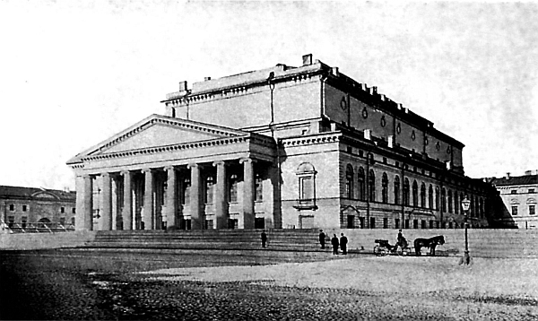 В конце 1824 года новое здание Петровского театра было открыто для артистов, которые в течение двадцати лет обживали другие площадки Москвы. Само открытие происходило 6 января 1825 года и было обставлено очень парадно и торжественно. С. Аксаков писал: «Большой Петровский театр, возникший из старых, обгорелых развалин, изумил и восхитил меня. Великолепное громадное здание, исключительно посвященное моему любимому искусству, уже одною своей внешностью привело меня в радостное волнение…». К великому сожалению и это великолепное творение через 28 лет подверглось сильнейшему пожару.