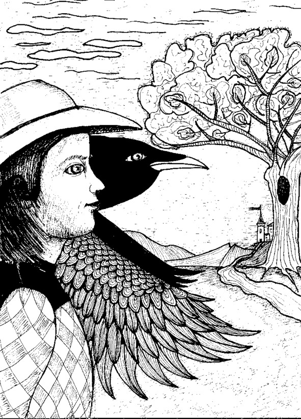 Я отличаюсь от других птиц тем, что у меня есть необычный опыт взаимодействия с человеком путём прикосновения его сознания, действия по воле человека. Я видел и прожил много того, чего не проживали и не видели мои сородичи. Они есть вокруг меня, я их вижу, слышу, но они для меня как дикари. Я чувствую, что я другой. Меня не привлекает взаимодействие с ними. Их там много. Они живут в лесу, а я на большом дубе. Чаще всего я нахожусь в полусонно-трансовом состоянии. Иногда я просыпаюсь и наблюдаю за тем, что происходит, отправляюсь на поиски пищи. Нахожу необычные вещицы, которые меня привлекают. Но всегда остается ощущение, что это полжизни, как будто половины уже нет, она недостаточно наполнена, как было раньше. Взаимодействие с другими воро́нами если и происходит, то на уровне инстинктов.