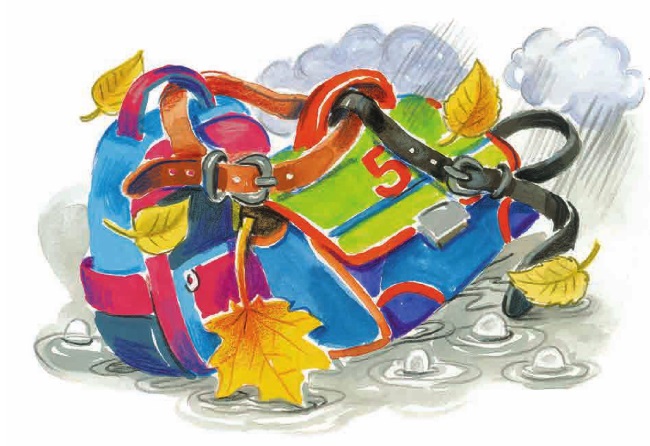 – Нужно портфели в окно побросать. Глянули мы в окно; возле самой стены сухо, а чуть подальше – огромная лужа. Не кидать же портфели в лужу! Мы сняли ремни с брюк, связали их вместе и осторожно спустили на них портфели. В это время звонок зазвенел. Учитель вошёл. Пришлось сесть на место. Урок начался. Дождь за окном полил. Марик записку мне пишет: «Пропали наши тетрадки».
