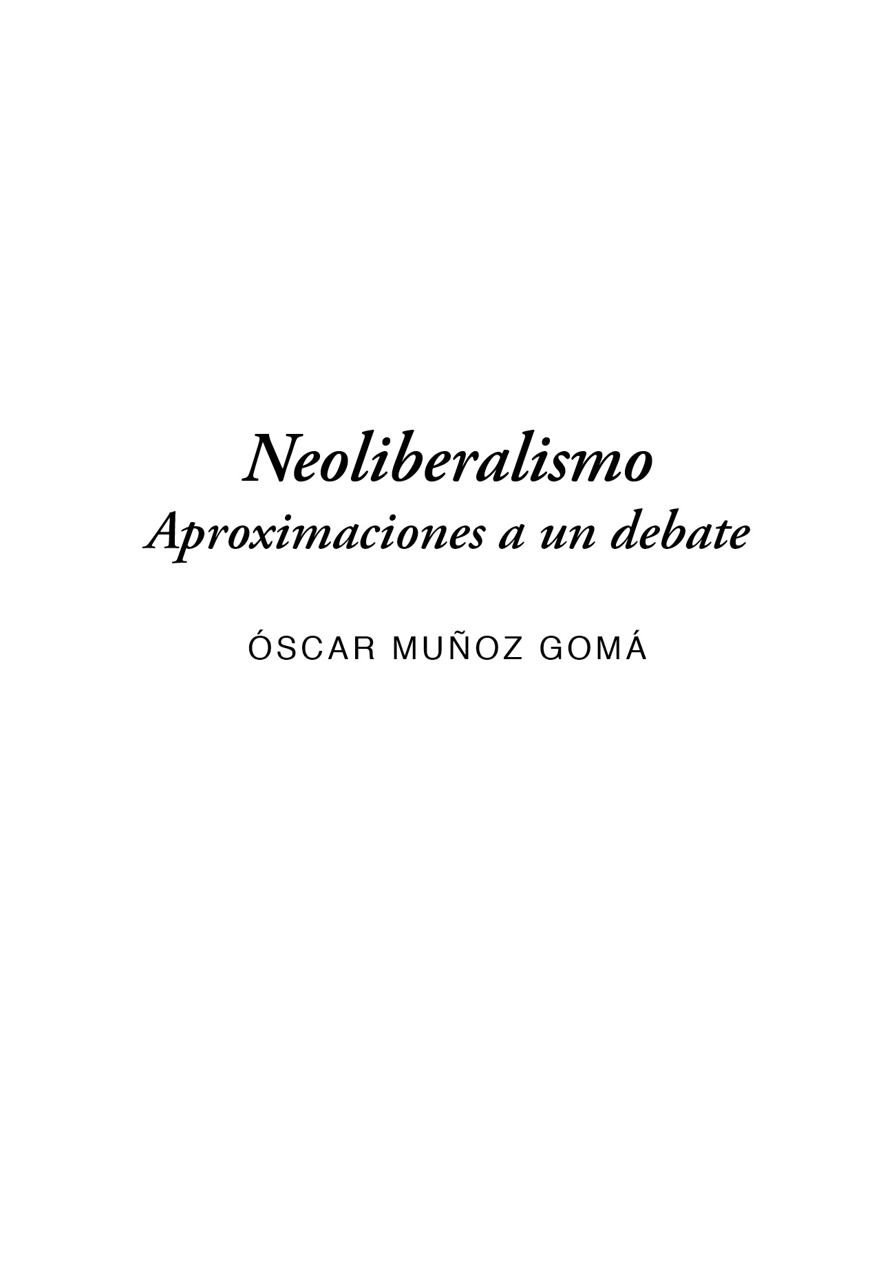 1. Neoliberalismo. Aproximaciones a un debate