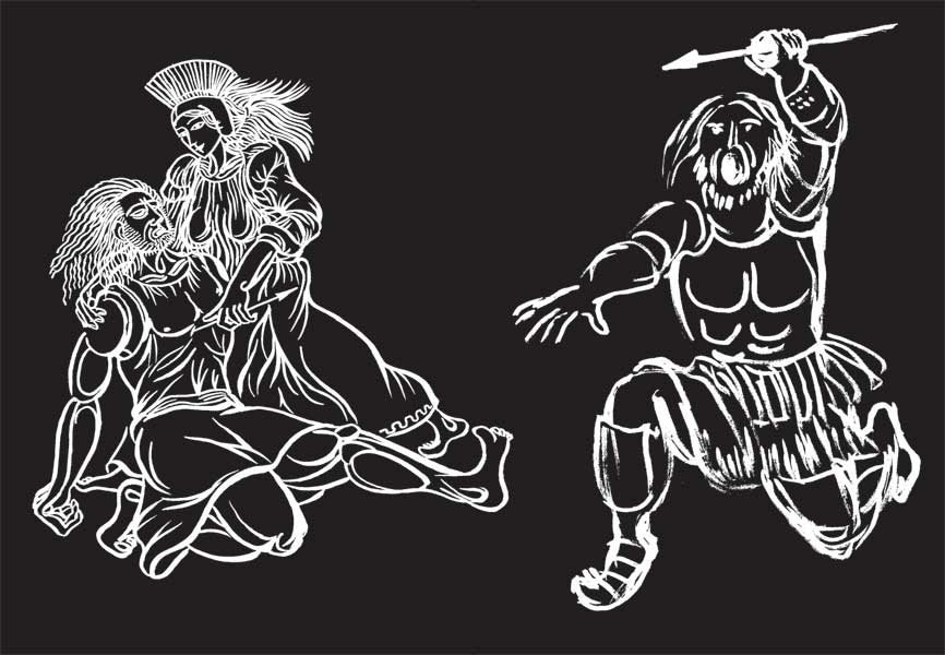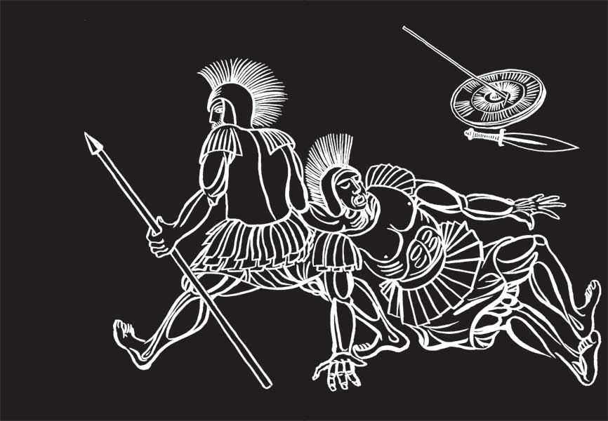 И только дыхание разгорячённого Менелая раздавалось над полем, он метался и не мог найти своего противника.