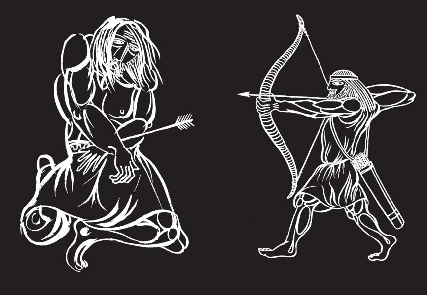 Говорят, его сам Аполлон стрельбе научил. А лук у него изумительный, дивный. Гордость лучника – лук. Изготовлен из рогов горной козы, которую Пандар застрелил на охоте, – на шестнадцать ладоней возвышались рога над козьим черепом. Лучший искусник над этим чудом трудился – творец дальнострельных луков, первый из первых.
